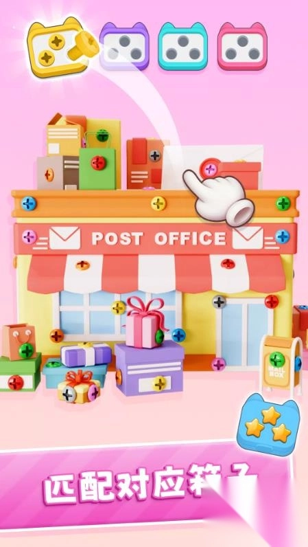3、把螺丝拖进颜色与之匹配的盒子里。