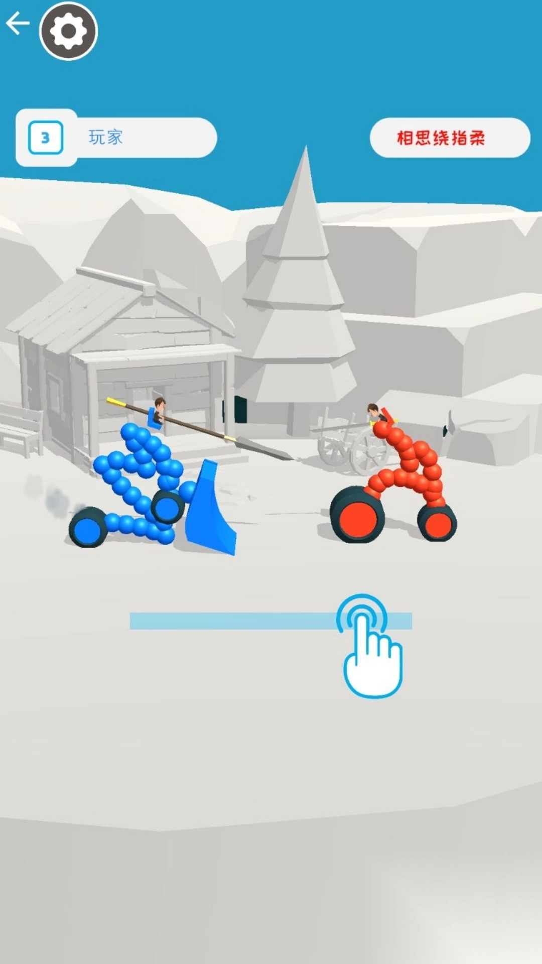 2. 对画出的车子进行操控,使其移动,借助车子的形状特性,撞击对手,让对手率先落地。