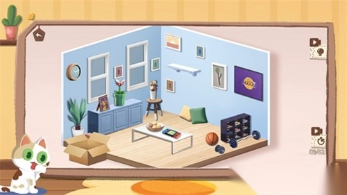 2. 在整理过程中,可爱的猫咪会现身,为玩家提供解题通关的小提示。