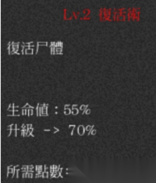 主要包含:复活术,技能消耗,狂暴和伤害转移,每个技能特点突出,但需要足够的技能点,升1级可获得1点。
