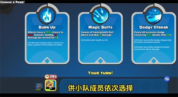 7、升级后会弹出天赋,供小队成员依次选择。
