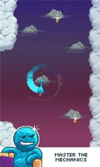 这款游戏的特色是使用黏糊糊的蓝色小探险家,玩家只需持续滑动屏幕,就能让小探险家在各个踏板间穿梭。当达成特定目标后,就能够为咕噜变换颜色。