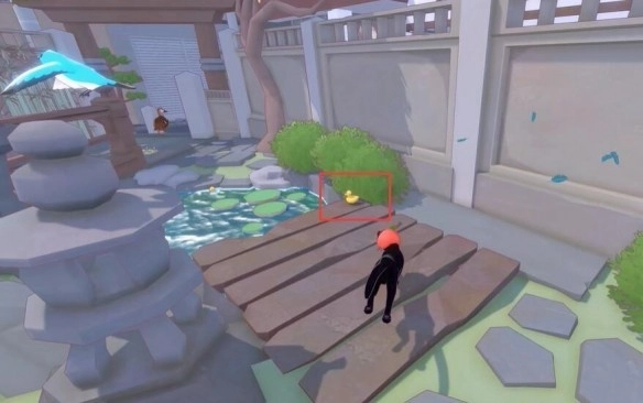 2、第二只在池塘边的一个靠墙的小花丛下面,如下图方框内。