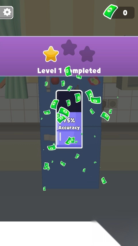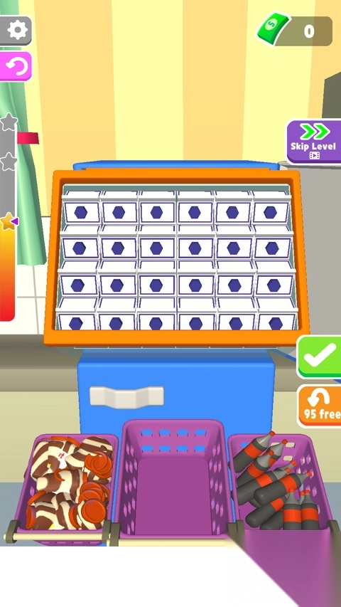 5、最后,当成功把冰箱的储物柜塞满后即可通关,并根据获得星星来奖励钞票;
