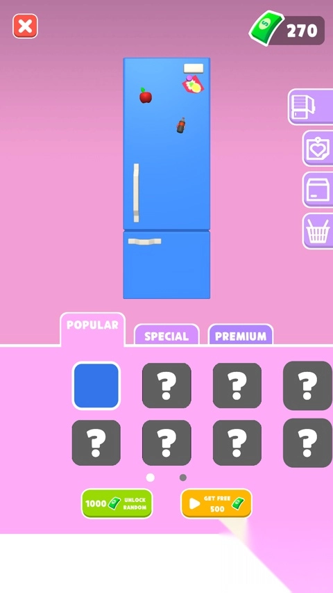 6、钞票可用来在商店解锁新的冰箱,以及购买贴纸装饰冰箱。