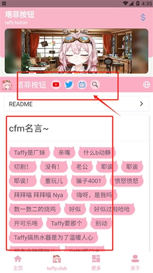 3、还可以查看最新的cfm名言,点击塔菲按钮可以快速跳转网页