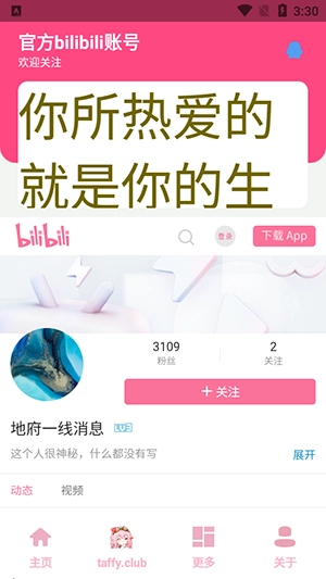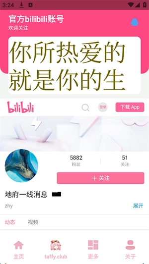 4、在更多页面还可以关注作者的官方哔哩哔哩账号