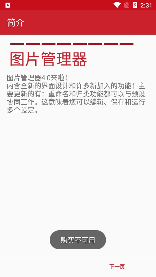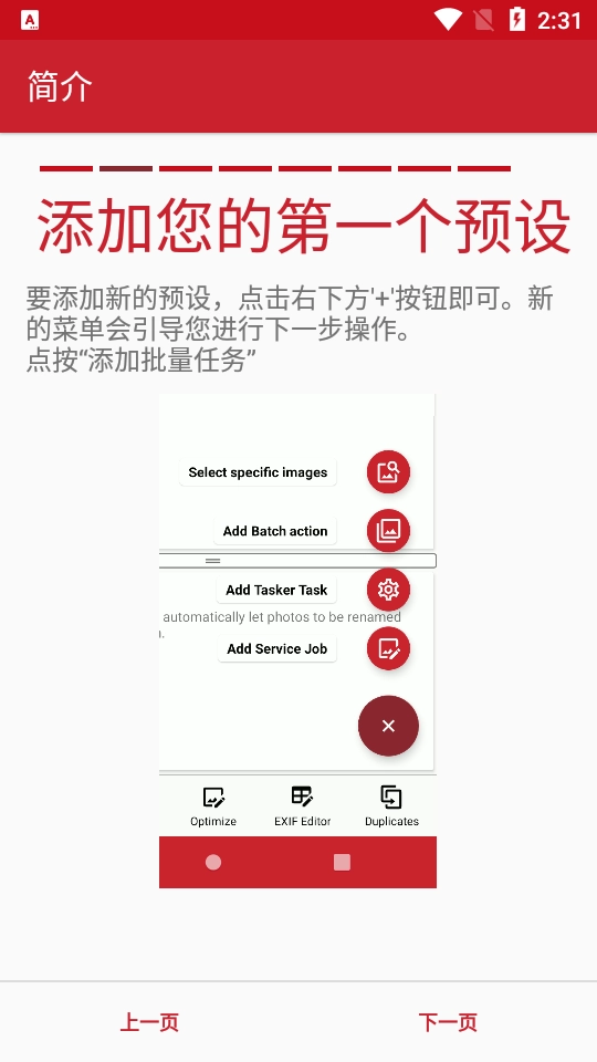 对话框将会引导您到可用的设置。点按右下方的下一页按钮前往下一个设置页面。