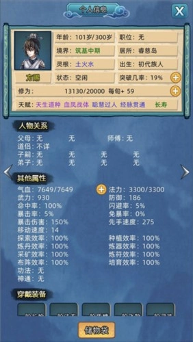 没有分配建筑工作和探索任务的会自行历练。 修为达到圆满,例如练气圆满会去历练,有概率获得筑基丹材料和筑基丹。 外出历练有各种机缘,同样也伴随着危险,有概率会以各种形式死亡。