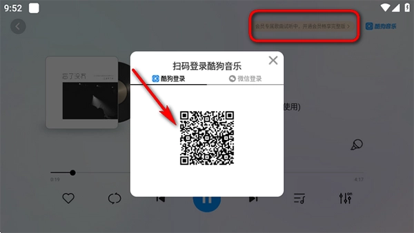 2、点开后直接使用酷狗扫码或者微信扫码登录。