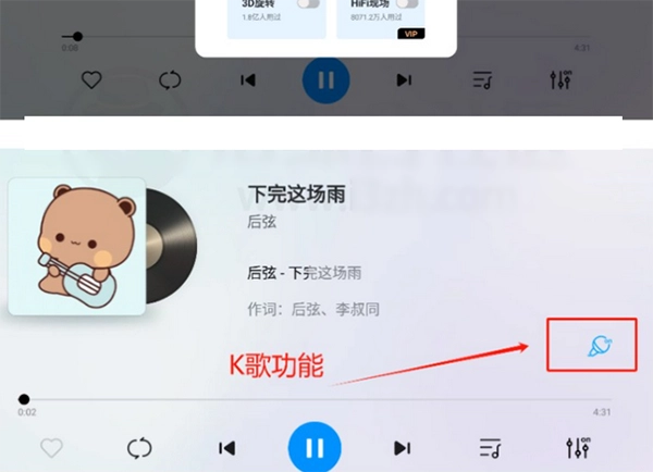 点击播放页「话筒图标」,秒变家庭 KTV!支持歌词实时显示,连「下完这场雨」等 VIP 歌曲都能唱,麦霸狂喜!唯一小遗憾是没有 MV 功能,但纯听歌 + K 歌已足够香~