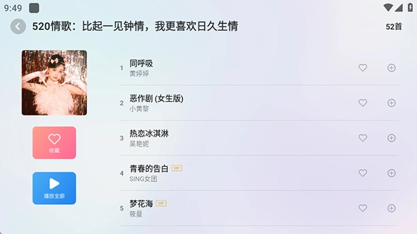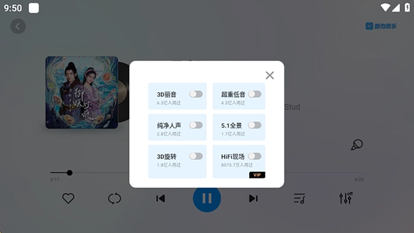2、继承酷狗音乐庞大的正版曲库,涵盖流行、摇滚、古典、民谣等各种音乐风格,新歌老歌一应俱全。无论是当下热门单曲,还是经典的怀旧金曲,都能在软件中轻松搜索到,满足不同用户对音乐的多样喜好。