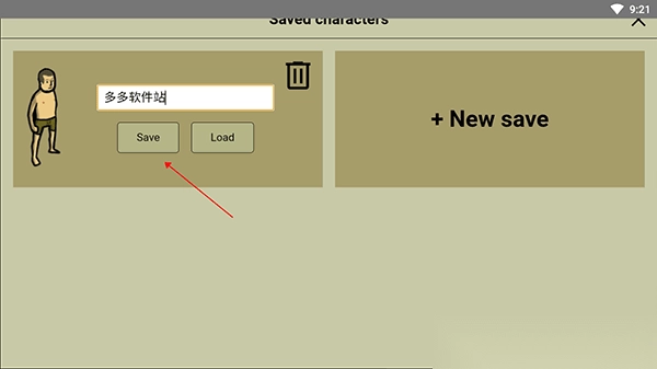 4、diy角色完成后,我们滑动之最上方“save”点击其中的“create new”可快速保存当前设置