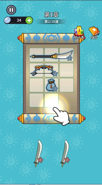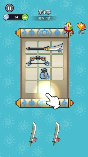 3、把相同的武器放置在一起,就能进行合成。