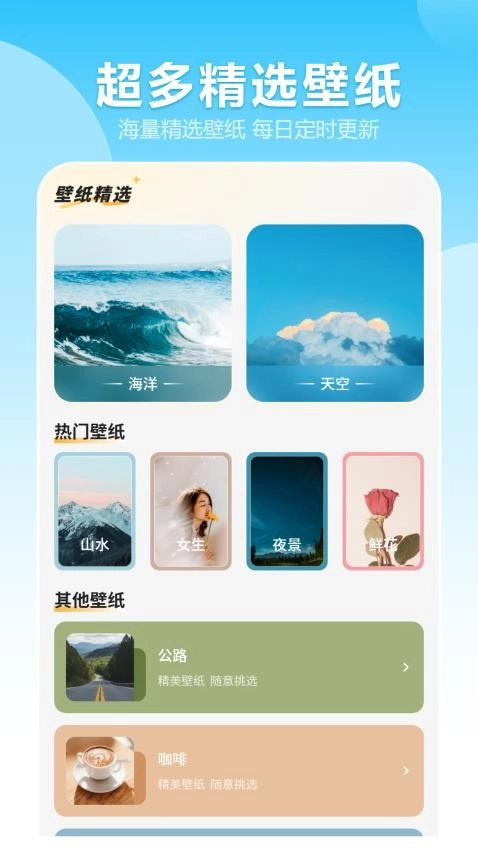 1.海量的壁纸能够实现定期更新,用户每天都可获取新内容,从而获得更强的沉浸体验。