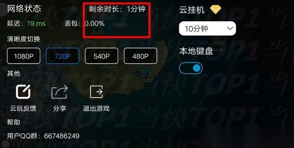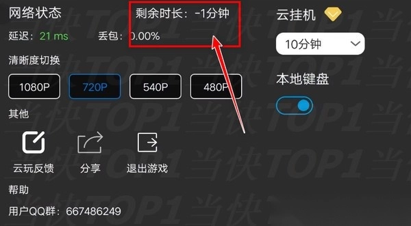 6、继续玩,剩余时长变成-1分钟负数了,但是还是可以玩!这样云原神的无限时长bug就卡成功了!什么时候修复不知道,各位快去下载试试。