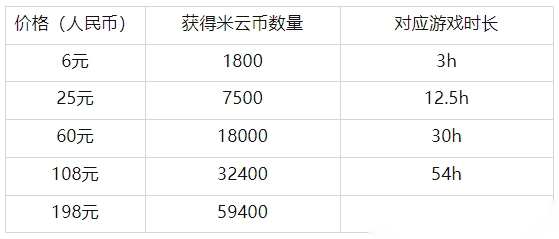 A:旅行者可通过点击信息界面或悬浮球中的【充值】来购买米云币,米云币有以下5个充值档位: