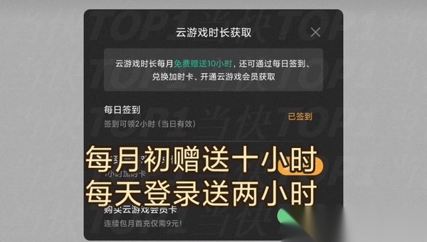 2、每月登陆有送10小时,每日签到还可以加2小时,加起来算每个月都有70小时的时长。