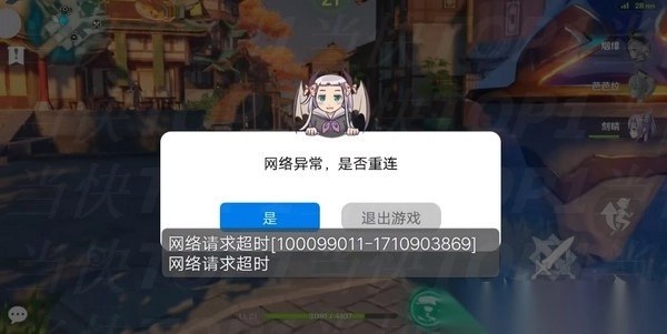 3、此时云原神会出现“网络异常、是否重连”的网络超时报错,就不要管在这里等。