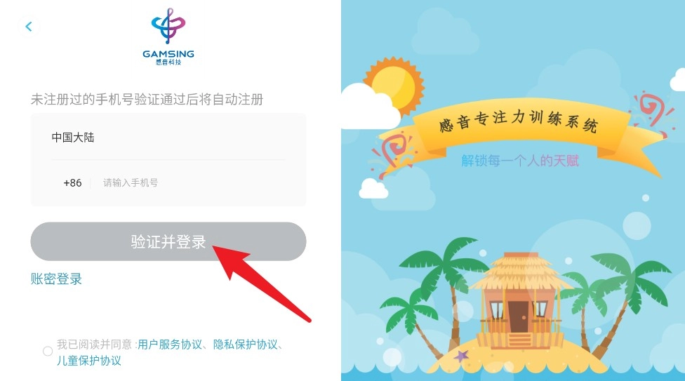 1.输入手机号码后点击“验证并登录”按钮完成注册或登录操作。