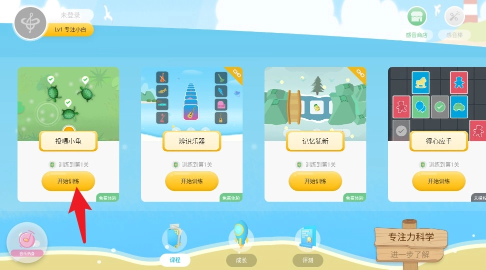 3.点击“开始训练”按钮即可进入对应关卡进行专注力训练。