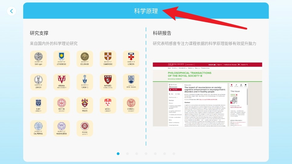 5.点击页面右侧“专注力科学”可查看课程背后的科学理论依据。