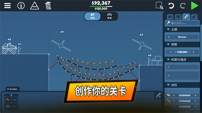 在沙盒模式中,解放你的工程创造力,把你的桥梁建造技艺发挥到极致。