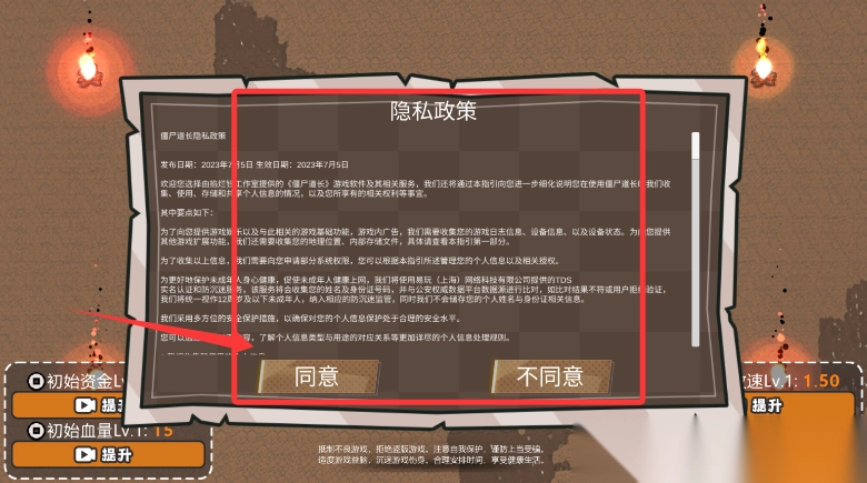 1. 首次启动时,需阅读并确认用户协议,点击“同意”按钮,就能踏入阴森诡谲的道门世界。