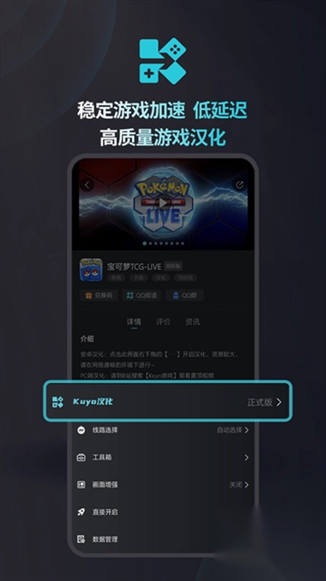 Kuyo是一款专注于日韩游戏的专业云游戏盒子。借助这款软件,用户无需安装,一键即可开启游戏之旅。不仅如此,它还具备游戏汉化、加速以及管理等诸多实用功能,助力玩家便捷畅玩日韩网络游戏。与此同时,Kuyo会依据当下热门手机游戏,精心打造专属频道,提供游戏节奏榜、攻略、WIKI等海量资讯,让用户仅凭这一个软件,就能全面掌握游戏动态。此外,Kuyo目前已支持《游戏王大师决斗》《炉石传说》《绯红的神约》《Nikke胜利女神》《天空之塔》《Marvel Snap》《云顶之弈TFT》《传奇M》等热门海外游戏的加速服务。有需求的小伙伴,赶快下载体验一番吧!