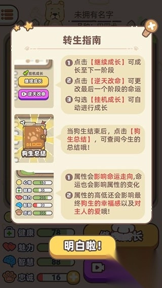 3、游戏提供多种狗狗品种选择,不同品种会影响初始属性和发展方向。