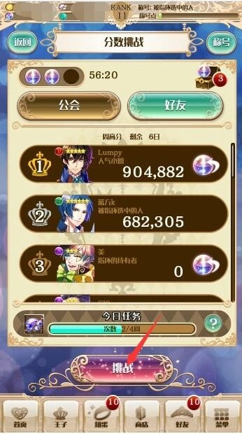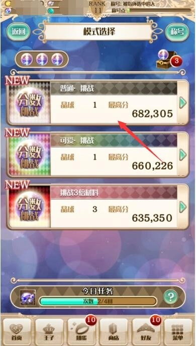Ps:每天玩家只要参加4次挑战模式就会可以获得10个碎片,碎片可以在第二个扭蛋机里的交换所里交换王子和材料,当然需要的数量肯定远远大于10了。