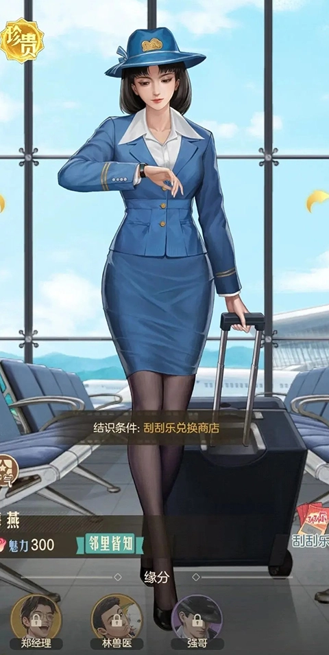 3、开局刮刮乐会赠送一张引荐卡,人才引荐卡很重要,一定要留着两张再进行兑换,主要前期兑换紫色性价比很低。而第二张人才引荐卡可以通过抽取或者引荐卡碎片合成,第一次兑换推荐“郑经理”,可以增加两次广场斗鸡活动次数,性价比高。