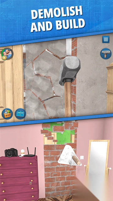 完整工具组和零件任你使用。使用它们来捶打、钻孔、打钉、组装物件,并尽你所能安装、修复和打扫房子里的大小事务。