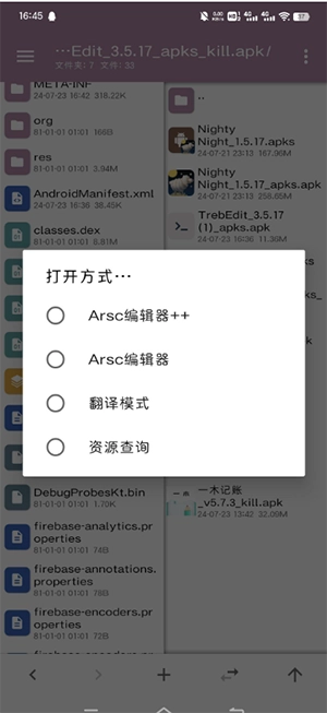点击resources.arsc文件,选择翻译模式,点击[DEFAULT],再点击右上角的三个点,从中选择语言选项。