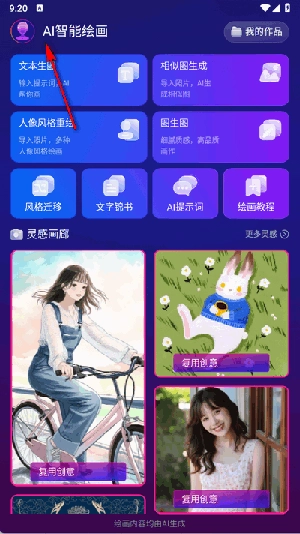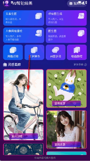 1. 于首页点击上方的AI智能绘画。