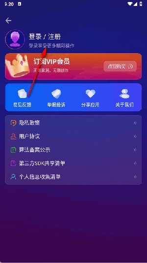 2、点击上方登录/注册。