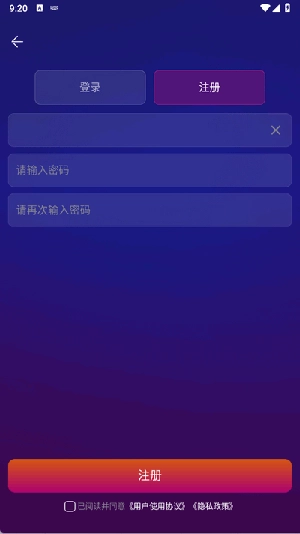 3、填入用户名和密码完成注册操作。