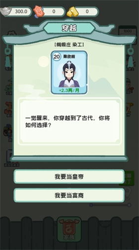 穿越法则小游戏是抖音上超火的以古代生活为背景的人生模拟游戏。在游戏里,各种随机事件会不断涌现,玩家做出的每一种选择,都将引领向截然不同的结果。玩家还能经营产业、培养家族成员,开启一段全新的人生旅程。