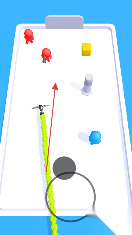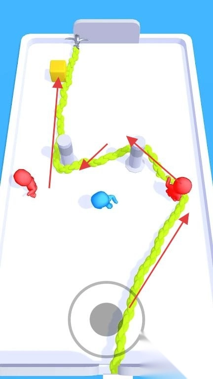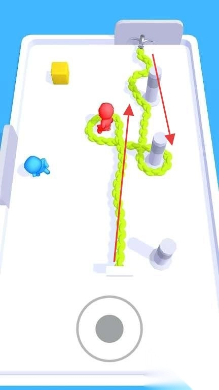 1. 通过拖动屏幕来操控绿色绳索移动,使其巧妙绕过灰色柱子,精心规划路径,从而让绳索成功连接起点与目标,实现缠绕和连接。