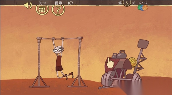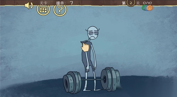 操作:先点击主角身后的“充气筒”,再点击杠铃,小贱成功举起超重物。
