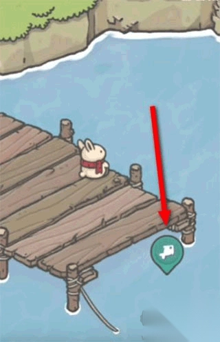 2、接着来到河边的小桥上,点击图标开始钓鱼。