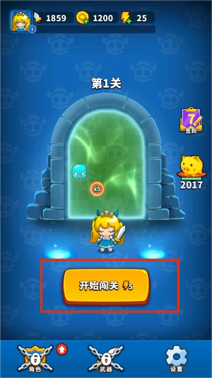 1. 启动游戏,在主界面点击显眼的“开始闯关”按钮,就能进入战斗场景。