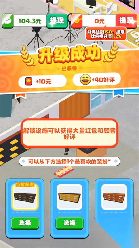 2、免费装修:玩家可以根据自己的喜好装修店铺,以吸引更多的顾客。