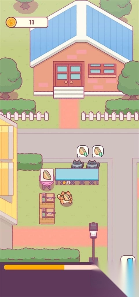 3、订单系统:每日都有海量顾客下单,要是完成大订单,那可赚得盆满钵满!用赚到手的钱来装修店铺,聘请更多猫咪员工,全力打造一家五星级小吃店!