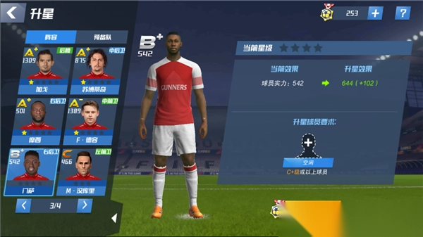 9、玩到大概11级(具体是11级还是12级记不太清了)的时候,升星功能就开启了。升星主要靠消耗球员以及升星材料,对球员的要求不算高,s + 级别的升星,只要a + 级别的球员就行。忍不住吐槽一下,升星功能开启居然都没有引导,我找了好一会儿才找到入口,必须得吐槽。好在升星带来的加成相当不错,s + 级球员升一星,瞬间就能增加200点能力值,挺开心的!