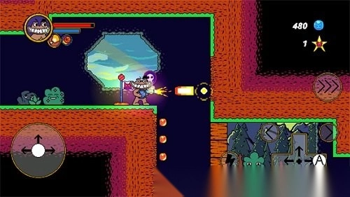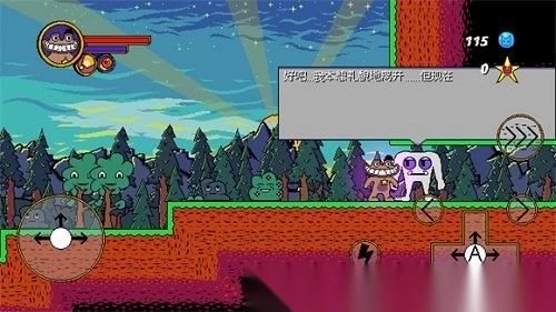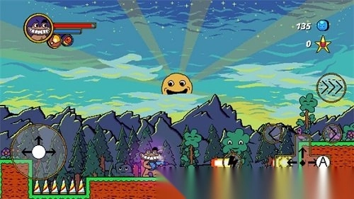 2. 进入关卡后,屏幕左侧用于控制角色前进、后退与跳跃;屏幕右侧的A键,负责控制射击方向;而带有三个向左箭头的按钮,其功能为冲刺;标有闪电图案的按钮,则是用来触发特殊技能。