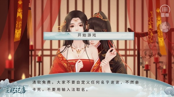 3. 王妃记事这款游戏的攻略1、打开游戏,我们可以直接点击开始游戏,点击右上角的菜单。