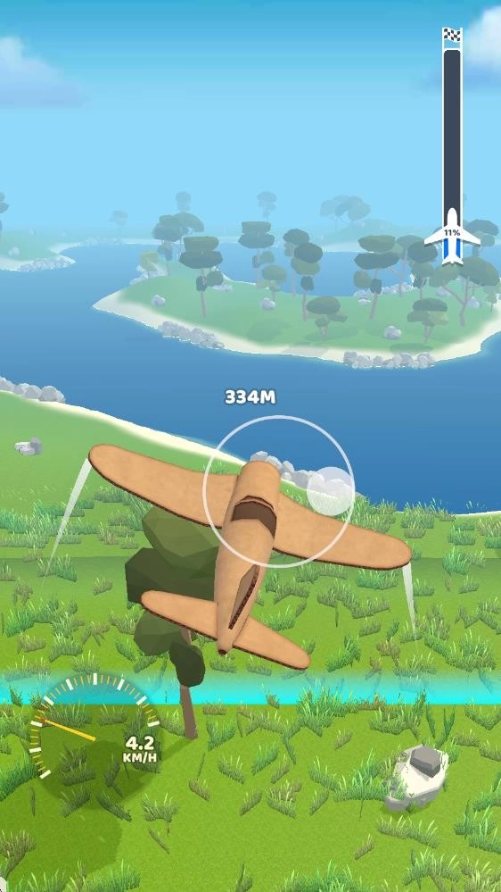 3、发射之后,飞机便会自主飞行。此时,拖动屏幕会出现虚拟摇杆,借助它能够操控飞机的飞行方向。