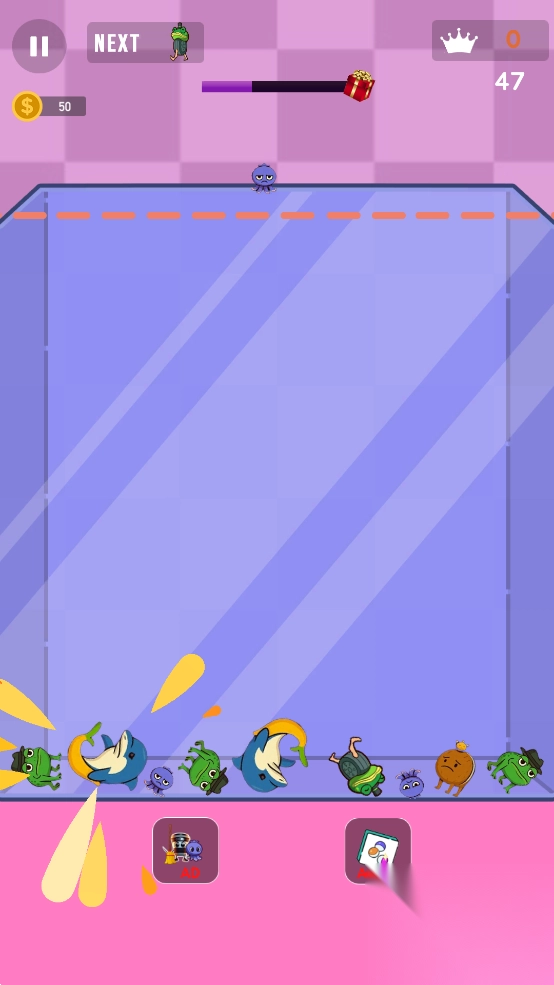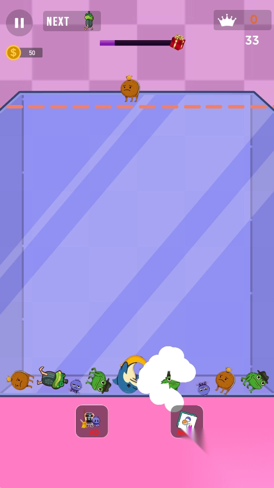 2. 玩法与合成大西瓜相同,让一些怪物向下坠落。