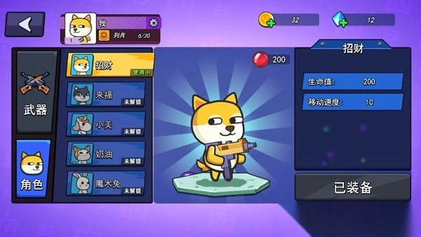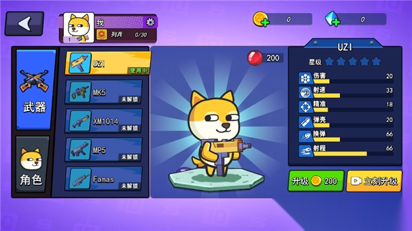 2、点击角色,用户可以看到自己的武器和角色状态,你也可以升级自己的武器或角色;